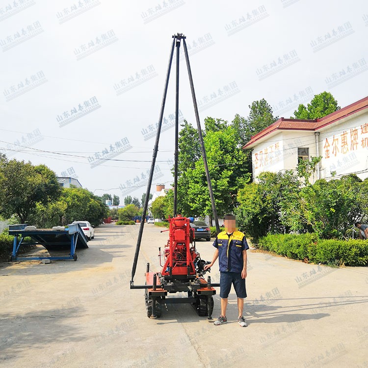我廠生產(chǎn)的BZ-50SL型鉆機(jī),是在50系列鉆機(jī)的基礎(chǔ)上升級改造的,解決了傳統(tǒng)小型液壓鉆機(jī)鉆桿短,鉆進(jìn)時(shí)需要反復(fù)提鉆下鉆的作業(yè)模式,該機(jī)型新增了履帶底盤,減輕了用戶的轉(zhuǎn)場負(fù)擔(dān),提高了作業(yè)效率,鉆桿取芯鉆具等放在底盤上,發(fā)動機(jī)器就可以轉(zhuǎn)場了,同時(shí)增加了移機(jī)功能,鉆桿長度達(dá)到2米,鉆塔高度4.5米,精簡了作業(yè)流程,換桿不需要拆卸牛頭,提升了鉆進(jìn)速度。